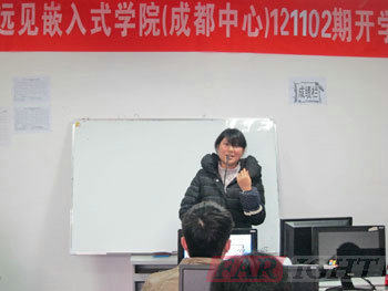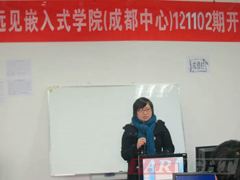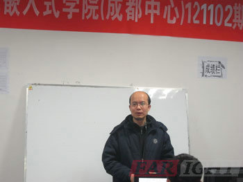 上午9時,典禮正式開始。首先,由成都中心校長為本次典禮致辭,陶老師結合近期的就業形勢,分析了嵌入式行業的現狀、前景,介紹了成都中心的相關情況、本期的課程安排、任課老師等,并對學員們提出了幾點希望:要有刻苦精神,好的心態,通過正確的渠道反映問題等,相信121102期的各位學員們通過自己的努力,在老師們的幫助下,4個月后都能學有所獲,實現自己的目標。