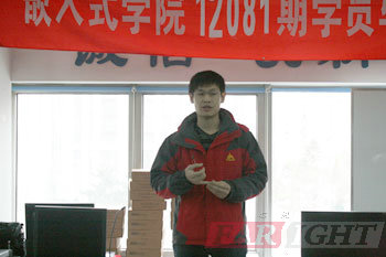 結業典禮首先由華清遠見教育科技集團院長季老師致辭,季老師首先對12081期學員為期四個月的學習做出肯定,并總結和回顧了學員們四個月的學習過程及取得的學習成果,同時季老師還鼓勵學員們對自己要充滿信心,要不斷的學習,對自己行業發展要充滿信心,并歡迎各位同學在工作后繼續與學院保持聯系,把華清遠見教育科技集團作為未來職業發展的充電大本營和基地。