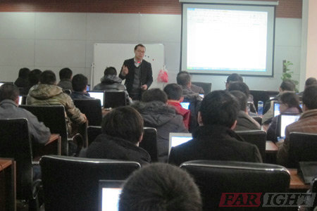 為提高金網(wǎng)通電子有限公司工程師的專業(yè)技能,華清遠見成都中心的老師為本次內(nèi)訓(xùn)制訂了豐富的內(nèi)容,主要包括四大組件、高級UI、自定義組件、應(yīng)用程序設(shè)計、ListView及其優(yōu)化、Gallery與ImageSwitch、數(shù)據(jù)存儲、Intent及其與進程間通信、界面更新、Louncher、Android多煤體開發(fā)、圖形編程、Android網(wǎng)絡(luò)編程、Webkit及JS擴展、NDK、游戲開發(fā)等內(nèi)容,兩位老師深入淺出的授課風(fēng)格及專業(yè)的課程內(nèi)容講解,讓在場工程師受益匪淺,好評連連。