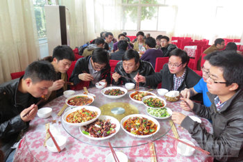 在輕松的氛圍中,時(shí)間慢慢的溜走。很快到了午飯時(shí)間,大家驅(qū)車來到幸福梅林的一農(nóng)家小院,院子里載滿了桃花,各居枝頭,爭奇斗艷。飯前,學(xué)員們有的坐在桃花叢中懶洋洋的曬著太陽,有的品著小茶,有的蕩著秋千,有的打起了乒乓球,好不愜意。飯點(diǎn)一到,大家迅速坐好,等著開飯。真是心情好,胃口就好,一大桌的農(nóng)家美食,漸漸見底。吃飽喝足,到小院兒里散散步,以助消化。