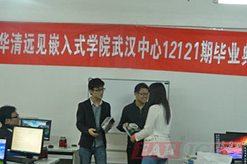 2013年4月19日華清遠(yuǎn)見(jiàn)嵌入式武漢中心12101期畢業(yè)典禮在武漢工程大學(xué)科技孵化器大樓804-1舉行。參加本次畢業(yè)典禮的嘉賓有:項(xiàng)目指導(dǎo)老師莊老師、就業(yè)指導(dǎo)老師周老師、班主任王老師,彭老師等。