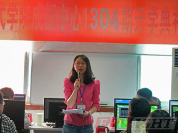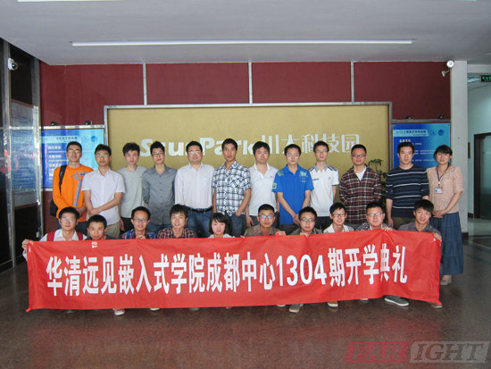 2013年4月27日,成都中心所在的四川大學大學科技園的嵌入式實驗室一里迎來了1304期的學員們,成都中心學術經理潘老師,教學部馮老師,就業專員龔老師,行政助理鄭老師出席了本次開學典禮。在這個特別的日子,我們對雅安地震中失去生命的親友表示悼念的同時將以嶄新的面貌迎接未來,也更加珍惜在華清遠見學習充電的機會。