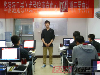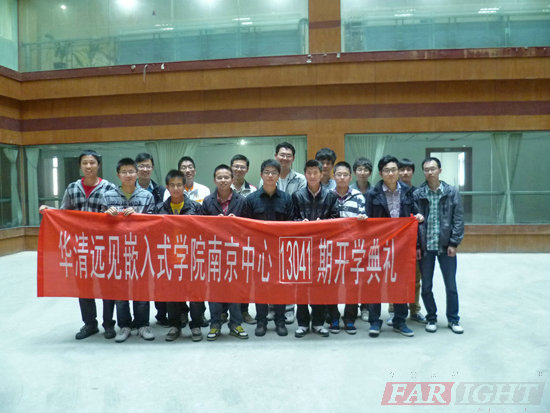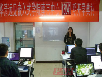 2013年5月6日,華清遠見教育科技集團南京中心13041期的開學典禮在教室一隆重舉行。參加開學典禮的有南京中心校長劉老師、教學方老師以及班主任兼就業冀老師。