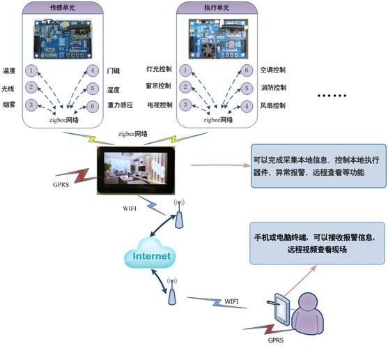 WIFI、ZigBee等網絡系統,平板電腦、傳感器、執行單元組成的硬件系統,并充分融入了嵌入式技術、物聯網技術,使得系統具有擴展性好、