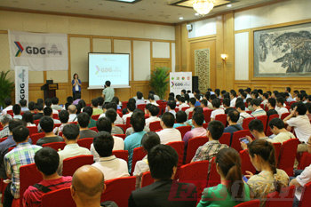 | 圖一、工作人員安排簽到 | 圖二、GDG活動現(xiàn)場盛況 |