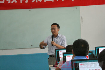 | 圖一、華清遠見教育科技集團院長季老師為開學典禮致辭 | 圖二、華清遠見教學總監(jiān)曾老師講解課程體系 |