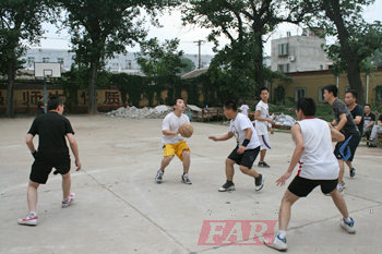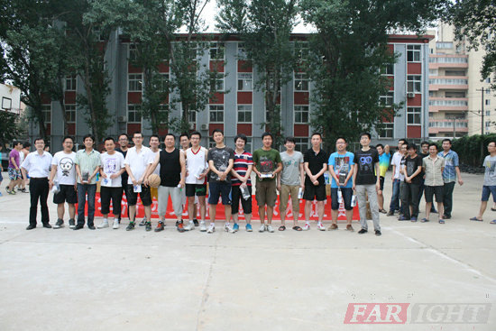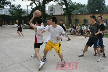 接下來我們又開始了“師生友誼賽”,這場比賽的開始“教師隊”以快速的防守和遠投將比分拉開,在場學員們無不驚訝教師們良好的籃球技巧,在比賽進行到20分鐘后,學員冠軍隊發揮出冠軍水平,傳球,運球,上籃,進!教師隊的老師們也因為沒有替補隊員消耗掉大半的體力,后只看著冠軍隊在球場上跑跳自如,生龍活虎。后“山鷹隊”還是以46::43戰勝了“教師隊”。