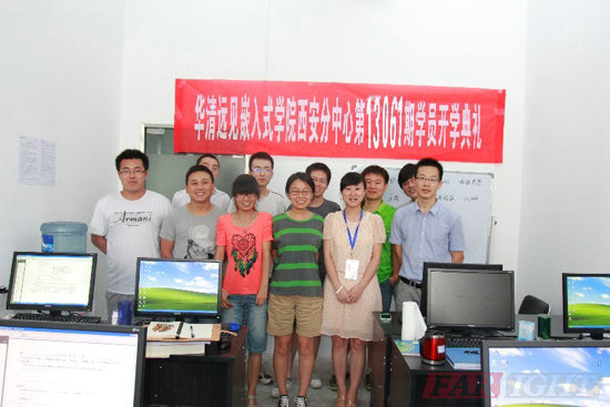 西安的盛夏,在連日的高溫下早早到來。高溫焦灼下,這個城市也漸漸開始狂躁。如一場及時雷陣雨,像隨風潛入夜一般的透意清涼,華清遠見西安中心13061班在七月一號開始了一階段的學習。自6月17號基礎(chǔ)補習以來,13061期的學員便開始了踏實的學習征程。在基礎(chǔ)補習之后,華清遠見西安分中心嵌入式Linux&Android就業(yè)班13061期學員在2013年7月1號迎來了他們的開學典禮。