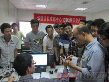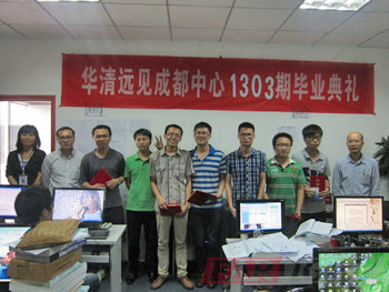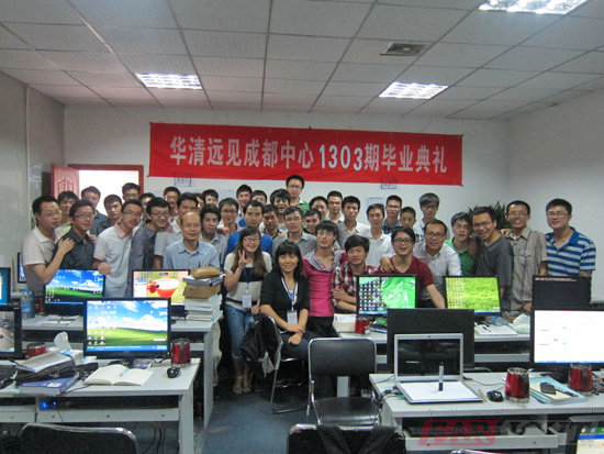 2013年7月12日,華清遠見成都中心1303期學員順利畢業。1303期的項目答辯和畢業典禮在位于四川大學大學科技園里的805小教室隆重舉行。成都中心校長陶老師、項目負責老師潘老師、教學部尹老師、就業部周老師、班主任李老師及1303期全體學員出席了本次畢業典禮。
