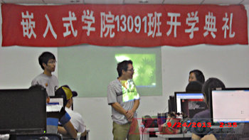開學典禮在2013年9月25日上午9時許開始,首先是班主任秋老師對剛剛結束的C語言補習進行了簡單總結,并對這短時間大家的出勤表現給予了高度評價,希望大家能夠堅持下去,保證一個良好的學習習慣。同時秋老師再次強調講解班級管理規定,正所謂“沒有規矩不成方圓”,也希望同學們能夠遵守班級規定,培養自己、鍛煉自己團隊精神。