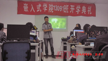 接著上海中心負責人王老師致辭。王老師介紹了華清遠見的辦學理念,華清遠見的學習特點“勤作筆記、勤問老師、勤奮學習”。同時古老師也對當前普遍關注的熱點 “電子書”、“移動通訊設備”等進行了逐一的分析,并以“智能家居”、“智能交通”為例讓大家能夠充分感受到嵌入式行業的優勢和迅猛發展的現狀。王老師鼓勵13091期的學員要努力學習,充分調動起自己的興趣和學習積極性,在華清遠見各位老師的幫助下,真正達到學有所成,終成為一名合格的嵌入式工程師。希望同學們能夠迅速找到適合自己的學習方法,真正做到有質有量的學習。