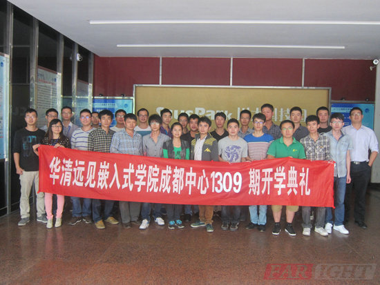 2013年10月8日,華清遠見成都中心迎來了1309期的全體學員。當天上午,1309期開學典禮在成都中心所在的四川大學大學科技園嵌入式實驗室一隆重舉行。成都中心校長陶老師,學術經理潘老師,教學部馮老師,就業專員龔老師,班主任李老師以及1309期全體學員出席了本次開學典禮。