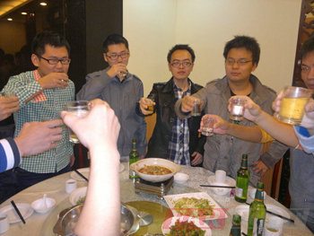 結束一天的游園,大家伙提議聚餐。于是乎,同學們來到了附近的飯店,點了滿滿一大桌的好菜,迫不及待的開吃啦。吃飽喝足,時間還早,大家的興奮勁啊,也還未散去,于是一行人,又來到了歡樂空間,一展歌喉。這一到包廂啊,平日里那些沉默寡言的同學們,立馬變了一個人一樣,真是令人大開眼界,大飽耳福,班里原來這么多多才多藝的能人啊,平時還真是沒有看出來。這邊的一伙完游戲喝酒,玩的不亦樂乎。那邊的幾個麥霸,干脆變成了開演唱會,無比的陶醉,也不管有幾個觀眾,完全沉醉其中無法自拔。包廂里的熱鬧和喧囂還在繼續,夜已深,依依不舍大家各自回家。