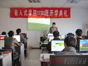 緊接著上海中心校長王老師為典禮致辭。王老師首先為大家介紹為什么學習嵌入式,嵌入式技術是未來十年信息產業的基礎!“后嵌入式”時代已來臨,“未來技術”離不開嵌入式,學員對嵌入式行業充滿了信心,并給大家看另一段視頻,更說明了嵌入式行業美好的發展前景。其次介紹華清遠見具有早、專注、系統與權威的優勢,就因為這些優勢,學員選擇到華清遠見來上課,這說明我們華清遠見是值得信賴的。然后介紹了我們華清遠見教育科技集團成立的背景以及華清遠見教育科技集團的優勢,強大的師資團隊、實用的課程體系、權威的認證體系、支持高校嵌入式學科建設、構建企業人才培養標準和全國范圍的就業服務體系。后劉校長又給學員們在培訓期間提了幾點學習建議,希望學員們培訓期間刻苦學習,講究學習方法,也要注意心態平和,勞逸結合,為自己而學。