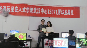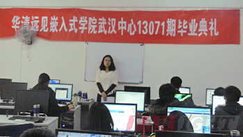 2013年11月18日,華清遠見武漢中心13071期項目答辯和畢業典禮在位于武漢工程大學科技孵化樓806室隆重舉行。出席本次項目答辯和畢業典禮的老師有中心校長周老師,班主任陳老師、項目輔導老師萬老師和宋老師等。
