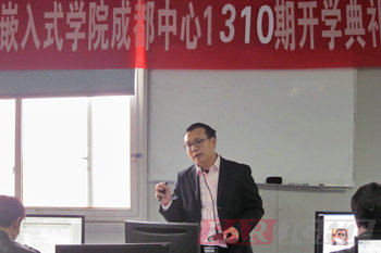 上午9點(diǎn),開(kāi)學(xué)典禮正式開(kāi)始,首先,由華清遠(yuǎn)見(jiàn)成都中心校長(zhǎng)陶老師為本次典禮致辭。陶老師代表成都中心對(duì)1310期全體學(xué)員表示熱烈的歡迎。作為嵌入式行業(yè)資深的職業(yè)規(guī)劃師,陶老師結(jié)合自己多年在嵌入式領(lǐng)域的工作經(jīng)驗(yàn),分析了嵌入式行業(yè)的現(xiàn)狀、前景,向?qū)W員們介紹了華清遠(yuǎn)見(jiàn)的發(fā)展歷程、師資隊(duì)伍,同時(shí)也對(duì)新學(xué)員們提出了殷切期望:希望他們能夠刻苦學(xué)習(xí),掌握學(xué)習(xí)方法,調(diào)整學(xué)習(xí)心態(tài),遵守學(xué)院的規(guī)章制度并通過(guò)正確的渠道及時(shí)的反映問(wèn)題,要懂得堅(jiān)持,期望他們經(jīng)過(guò)四個(gè)月的學(xué)習(xí)能夠?qū)W有所獲,成為優(yōu)秀的嵌入式研發(fā)人才。