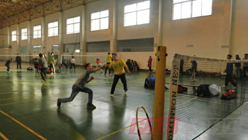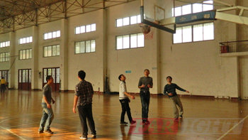 吃過午飯,按照原定計劃時間,同學們齊刷刷的集合啦。班長一聲令下,集體的朝體育館進發。來到體育館,大家的運動細胞頓時全部被調動起來了,自由組隊之后,都練上啦。看這邊,籃球隊的小伙子們,技術還真不錯,平時還真沒看出來,還真有幾分專業水準的動作呢!瞧,這個三分球,真漂亮!再來看看邊上打羽毛球的伙伴們,呵呵,單打的,男子雙打,男女混打的,應有盡有啊。這可是考驗默契度的時候啦,來看看我們這些臨時組隊的同學們怎么樣?呦,還可以,戰斗力不錯,雖然默契度還有待培養。再來看看我們的乒乓球隊,哇,這真是高手如云呀,連我們的2為巾幗英雄都上場啦!
