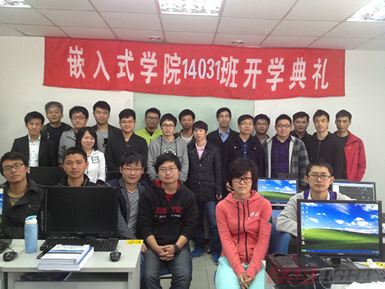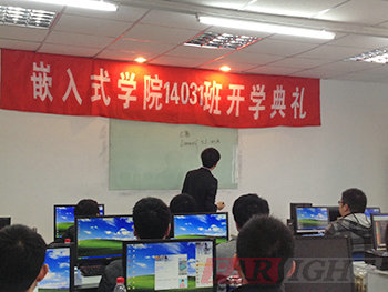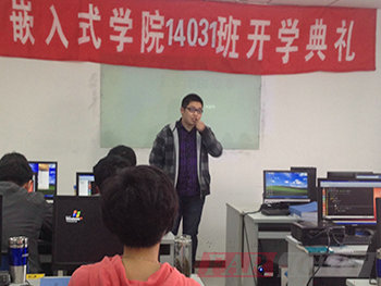 風(fēng)趣幽默的自我介紹后由上海中心校長王老師為典禮講話。王老師首先為大家介紹為什么學(xué)習(xí)嵌入式,嵌入式技術(shù)是未來十年信息產(chǎn)業(yè)的基礎(chǔ)!“后嵌入式”時代已來臨,“未來技術(shù)”離不開嵌入式,學(xué)員對嵌入式行業(yè)充滿了信心。 王老師對華清遠(yuǎn)見教育科技集團(tuán)的文化、發(fā)展歷程及授權(quán)合作單位進(jìn)行了簡短的介紹,華清遠(yuǎn)見具有早、專注、系統(tǒng)與權(quán)威的優(yōu)勢,就因?yàn)檫@些優(yōu)勢,學(xué)員選 擇到華清遠(yuǎn)見來上課,這說明我們?nèi)A清遠(yuǎn)見是值得信賴的。然后介紹了我們?nèi)A清遠(yuǎn)見教育科技集團(tuán)成立的背景以及華清遠(yuǎn)見教育科技集團(tuán)的優(yōu)勢,強(qiáng)大的師資團(tuán)隊(duì)、實(shí)用的課程體系、權(quán)威 的認(rèn)證體系、支持高校嵌入式學(xué)科建設(shè)、構(gòu)建企業(yè)人才培養(yǎng)標(biāo)準(zhǔn)和全國范圍的就業(yè)服務(wù)體系,并對當(dāng)前普遍關(guān)注的熱點(diǎn)“物聯(lián)網(wǎng)”、“云計(jì)算””等進(jìn)行了逐一的分析,并舉例我們?nèi)A清遠(yuǎn)見對一些傳統(tǒng)企業(yè)進(jìn)行內(nèi)訓(xùn)的技術(shù)點(diǎn)等讓大家能夠充分感受到嵌入式行業(yè)的優(yōu)勢和迅猛發(fā)展的現(xiàn)狀。同時王老師鼓勵14031期的學(xué)員要努力學(xué)習(xí),充分調(diào)動起自己的興趣和學(xué)習(xí)積極性,在華清遠(yuǎn)見各位老師的幫助下,真正達(dá)到學(xué)有所成,終成為一名合格的嵌入式工程師。后王老師也給每位同學(xué)提出了幾點(diǎn)希望,希望同學(xué)們能夠迅速找到適合自己的學(xué)習(xí)方法,真正做到有質(zhì)有量的學(xué)習(xí)。