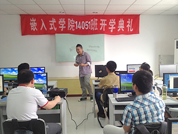 接下來上海中心校長王老師為開學典禮致辭。王老師首先為大家介紹為什么學習嵌入式,嵌入式技術是未來十年信息產業的基礎!“后嵌入式”時代已來臨,“未來技術”離不開嵌入式,學員對嵌入式行業充滿了信心。王老師對華清遠見教育科技集團的文化、發展歷程及授權合作單位進行了簡短的介紹,華清遠見具有早、專注、系統與權威的優勢,就因為這些優勢,學員選擇到華清遠見來上課,這說明我們華清遠見是值得信賴的。然后介紹了我們華清遠見教育科技集團成立的背景以及華清遠見教育科技集團的優勢,強大的師資團隊、實用的課程體系、權威的認證體系、支持高校嵌入式學科建設、構建企業人才培養標準和全國范圍的就業服務體系,并對當前普遍關注的熱點“物聯網”、“云計算”等進行了逐一的分析,并舉例我們華清遠見對一些傳統企業進行內訓的技術點等讓大家能夠充分感受到嵌入式行業的優勢和迅猛發展的現狀。同時王老師鼓勵14051期的學員要努力學習,充分調動起自己的興趣和學習積極性,在華清遠見各位老師的幫助下,真正達到學有所成,終成為一名合格的嵌入式工程師。后王老師也給每位同學提出了幾點希望,希望同學們能夠迅速找到適合自己的學習方法,真正做到有質有量的學習。