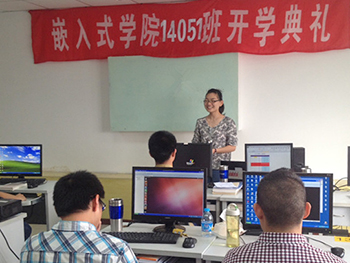 后是教學部孟老師結合就業情況為大家介紹嵌入式的課程體系與學習方法。課程大體分三個階段四個部分:基礎準備階段、應用編程階段、底層開發階段、真實項目階段,還詳細地介紹了每一期學習的內容、特點與任務,特別是要注重動手能力,平時遇到問題要多思考,多交流,每個學習階段都有不同的側重點與學習任務,這就希望大家上課能認真聽講,課后多復習、多練習,這樣更有助于大家的學習 。后,孟老師給予學員們在學習過程中提了幾點建議,希望學員們在學習過程中能勞逸結合,找準學習方法,有目的、有計劃的學習,課后學會鞏固,以一位準嵌入式工程師標準來時刻要求自己。