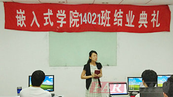 2014年7月1日華清遠(yuǎn)見教育科技集團(tuán)上海中心14021期結(jié)業(yè)典禮在第四教室隆重舉行。參加本次畢業(yè)典禮的嘉賓有上海中心校長王老師、教學(xué)部田老師、就業(yè)部付老師等。
