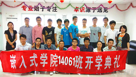 典禮的后,參加華清遠見14061期開學典禮的全體老師及學員,來到教學大廳合影留念,見證他們起航的風采。祝愿14061期的學員們能夠在接下來的學習生活中不斷進步,學有所獲,實現自己的愿望,成為嵌入式行業明日的棟梁,擁有自己美好的明天!