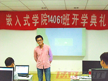 在輕松活躍的氛圍中,上海中心負責人王老師為開學典禮致辭。王老師首先從為什么要學習嵌入式出發,給大家講了幾點建議和要求,接著又講了華清遠見的幾點優勢,以及關于華清遠見的一些簡單介紹,為什么有那么多人選擇華清遠見。后在學習方面也給大家一些學習建議,希望大家珍惜這四個月的學習,自己好好努力,爭取四個月后大家都能找到一份理想的工作。