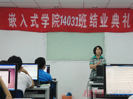 典禮開始李老師在發(fā)言中肯定了學(xué)員們四個(gè)月的付出,指出通過(guò)四個(gè)月集中的學(xué)習(xí),養(yǎng)成了刻苦學(xué)習(xí)的好習(xí)慣。同時(shí),也對(duì)大家這段時(shí)間出現(xiàn)的問(wèn)題指正,希望大家引以為鑒,以后類似的錯(cuò)誤不要再犯,希望每位學(xué)員在后期就業(yè)過(guò)程中能夠互幫互助,多總結(jié),共同進(jìn)步,日后在工作崗位上仍然要有刻苦的精神,要具備抗壓的能力,面對(duì)生活及工作中的困難要有必勝的決心。希望14031期學(xué)員能夠堅(jiān)持自己的理想,能夠秉著平穩(wěn)的心態(tài),在嵌入式這個(gè)領(lǐng)域里持之以恒的做下去,祝愿各位學(xué)員早日成為嵌入式行業(yè)精英!