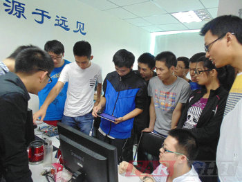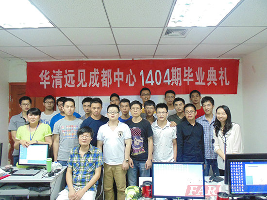 2014年9月5日,華清遠見成都中心1404期項目答辯和畢業典禮在位于四川大學大學科技園的嵌入式實驗室二隆重舉行,成都中心教學部兩位劉老師、尹老師和就業專員黃老師等出席了1404期項目答辯和畢業典禮。本次典禮由班主任張老師主持。