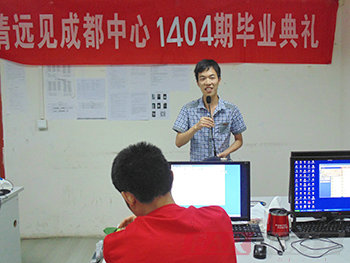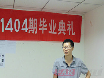 下午1點半,畢業典禮正式開始,首先由袁祖剛老師對四個月的學習做總結。他表揚了學員們學習中的成長和進步,也提了幾點建議:1、要有合理的定位,找到適合自己的崗位,注重長遠的發展。2、要善于自學,培養動手解決問題的能力。3、要懂得堅持。后他祝愿大家盡快找到滿意的工作。