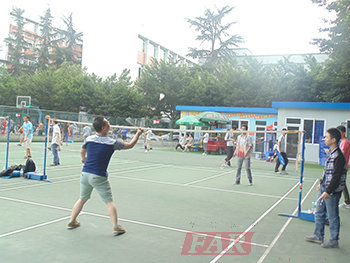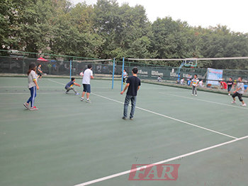 羽毛球比賽和乒乓球球比賽激烈地進行著,我們的“特邀”裁判們認真地行使著自己的權利,除了計分,還有安排隊員比賽的任務。乒乓球賽異常激烈地進行著,學員當中還隱藏著高手,弧圈、上旋、下旋和削球技術運用自如使高手之間的較量也更加精彩,只聽見啦啦隊響起陣陣地喝彩聲。經過激烈的“廝殺”,羽毛球比賽和乒乓球比賽的前三名脫穎而出,裁判和他們都得到了成都中心準備的小禮品。而兩支“超業余”的排球隊也打得甚歡,雖未進行比賽,但僅僅是友誼賽大家都如此投入,可見大家都有著運動員的精神。