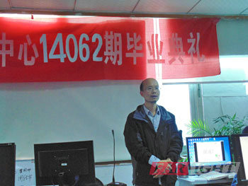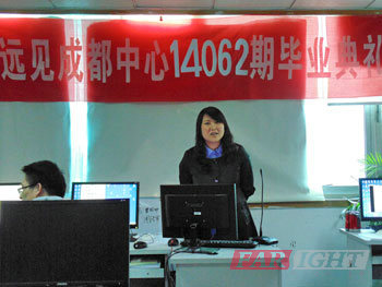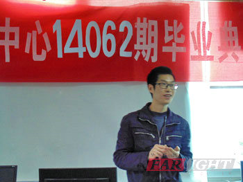 下午4點半,畢業(yè)典禮正式開始。首先由成都中心學(xué)術(shù)經(jīng)理潘老師致辭。他對大家四個月的成績表示肯定。同時他也給大家提了一些建議:一、要合理分配時間。二、要復(fù)習(xí)好基礎(chǔ)知識。三、要調(diào)整好心態(tài),不要找客觀原因,不僅是關(guān)注薪資而且要注重長遠的發(fā)展。后,他祝愿每個學(xué)員都能找到適合的工作。