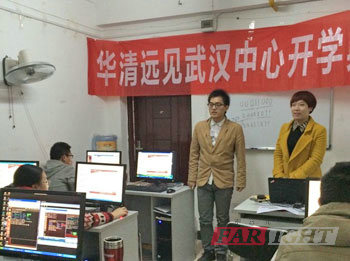 2014年11月5日,華清遠見武漢中心14101期開學典禮在科技孵化樓805教室隆重舉行。出席本次開學典禮的嘉賓有武漢中心負責人胡老師,武漢中心高級講師文輝老師、就業指導陳老師、班主任趙老師等。