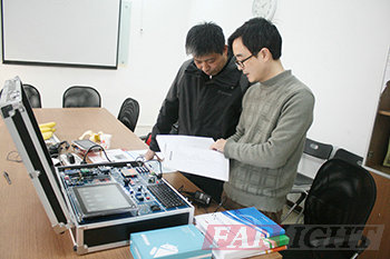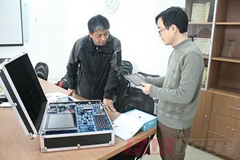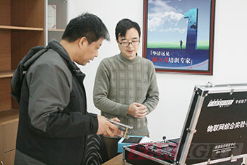劉老師向陳主任介紹并實(shí)操新的嵌入式教學(xué)設(shè)備(二)
