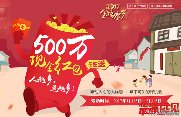 凡是在2017.1.15-3.15期間,報名華清遠見嵌入式、Android、HTML5、VR/AR、UI任意一門就業班課程的學生,都能立即拿到千元現金紅包!具體紅包數額為: