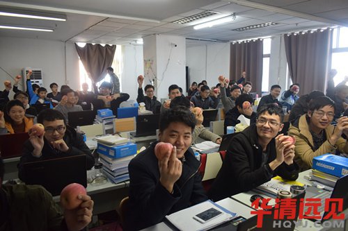 在劉校長的帶領下,南京中心的每一位學員都收到了充滿愛心與祝福的蘋果。小小的蘋果寄托了華清對學員的愛,也承載了學員們的夢。