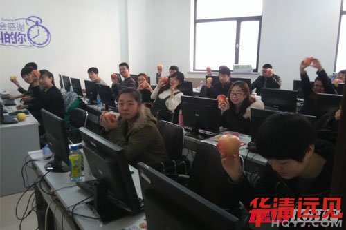 課間休息時分,沈陽中心的全體老師開始行動,給沈陽中心正在刻苦學習的華清學子送上節日的祝福,大家紛紛走進教室,把祝福的話語和蘋果送到每個學生的手里,學生收到這份禮物都露出了開心的笑臉,也算在寒冷的冬天,分享了關懷和溫暖,我們華清的祝福不分日夜,愿大家能時時幸福,平平安安!