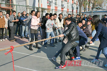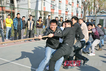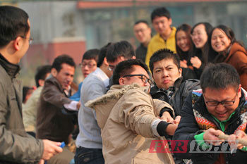 11月17日13時,在操場上如期舉行了本次運 動會的第一天項目。首先是激烈的拔河比賽的預賽,通過前一天的抽簽,由14091期VS 14074期,14101期VS 14075期。比賽還沒有開始,各班參賽選手就開始摩拳擦掌,各班啦啦隊也都為自己的班級加油助威。終,14074期與14075期獲勝,將于明天爭奪 冠軍。拔河比賽結束后,又進行了激烈的乒乓球往返跑,4個班級的4支代表隊都抱著必勝的信心,經過了一番激烈的比拼之后,終14074期4名學員以 35.9s的成績取得了冠軍,華清遠見北京中心校長關老師為獲獎的選手頒發獎品。第一天的比賽結束了,但是,大家的熱情卻依然高漲,大家更加的期待明天的 拔河決賽與多人多足的比賽了。