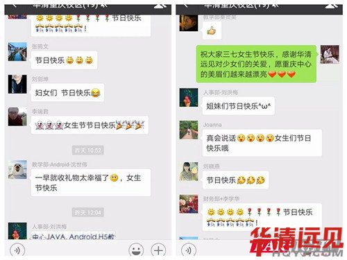 作為華清遠見重慶中心的一員,小編也是感受收到了來自同事們的濃濃暖意,尤其是公司的男同胞們在今天都變得尤其紳士,紛紛獻上一份份誠心滿滿的祝福。