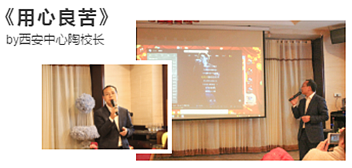 伯仲之間見伊呂,指揮若定失蕭曹。在兩位主持人宣布晚會正式開始后,由西安中心陶校長率先致辭,并為大家獻唱一首——《用心良苦》。作為西安中心這艘大船的船長,我們首先要感謝陶老師的辛苦與付出,感謝他的用心良苦,帶領著我們披荊斬棘。