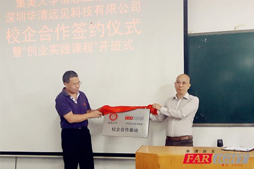 2015年11月9日上午8時10分,集美大學信息工程學院與深圳中心華清遠見教育科技集團就課程共建、實驗室共建等多個方面與我中心正式達成深度校企合作協議。 上午8:30時許,在集美大學克立樓213會議室舉行簽約儀式,參會人由集美大學信息工程學院鄭院長、楊副院長與華清遠見梁校長、教務部安卓總監張老師、市場渠道經理劉老師參加,此次揭牌簽約又將迎來互惠互利,合作共贏的大好局面。