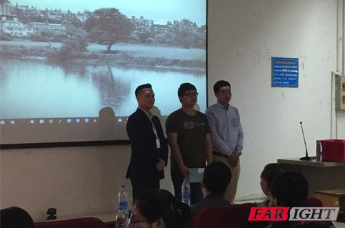 圖為:陳顥文老師演講 陳老師講完之后是第一輪抽獎環(huán)節(jié),抽獎嘉賓有陳顥文老師擔任,第一輪抽獎共抽出3等獎5名,每人獎勵華清遠見提供的精美筆盒一個,同時與陳老師合影。