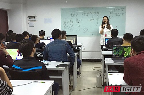 班主任高老師主持 在整個活動開始,由武漢中心教學主管程老師和高級講師羅老師進行分享,他們站在技術工程師角度給大家分享了一個工程師的成長以及之后的轉型創業,作為技術人在工作中需要注意的細節等。同學們都聽得特別投入,還記著筆記。在分享完后,學員進行提問,整個會場氣氛很熱鬧。