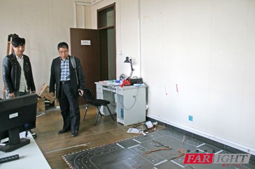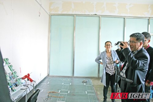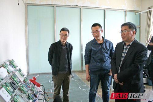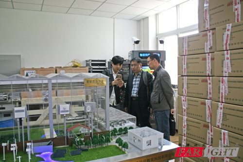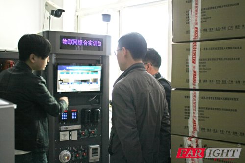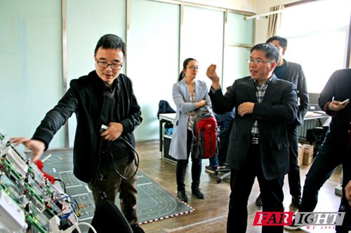 在與華清教職員工深入交流教學經驗的同時,于院長一行還參觀了華清研發中心、生產基地等,對華清的硬件實力給予很高的贊譽。校駐足參觀了包括:智能農業項目沙盤、物聯網綜合實訓臺、循跡小車項目、智能家居+VR實訓項目等多個項目,并詳細聽取工作人員的介紹,并親自戴上VR眼鏡進行體驗。