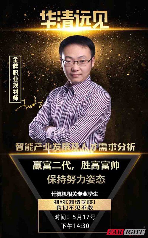 要聞二 5月10日-12日,濟南華清遠見老師應曲阜師范大學、濱州學院、山東財經大學三所高校邀請,為計算機相關專業學生帶來“智能產業發展及人才需求分析”主題講座。 此次的三場講座從李校長自身畢業十年的就業、創業經歷說起,談到畢業時他說明了選擇就業方向的重要性,并結合物理學、光電信息科學與工程、電子信息工程、通信工程、物聯網工程的實際課程,重點講解了當前熱門智能產業發展的情況,分析其企業新技術特別是智能產品技術的應用、企業人才需求標準、招聘常見要求、就業發展前景等,為大三學生的就業、擇業,考研提供一定的指導和借鑒。后適當講解智能硬件學習的過程,以及參加培訓對就業的幫助。 要聞三 講座通知:濰坊學院的學生享福了! 一、交流主題 智能產業發展及人才需求分析 二、適合傾聽的對象 物理學、光電信息科學與工程、電子信息工程、通信工程、物聯網工程專業的學生 三、時間 5月17日,下午14點30分 四、地點 濰坊學院 五、主講人 李鵬,山東師范大學MBA,北京華清遠見科技有限公司濟南分公司總經理,山東省青春創業促進會大學生創業行動導師,山東省物聯網協會教育分會副秘書長。 濰坊學院的小伙伴趕緊行動起來,沒有什么比猶豫再浪費時間的了。