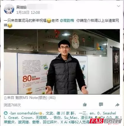 看看他同學的留言: 同學們都是羨慕的狀態! 而,我們的吳同學呢?