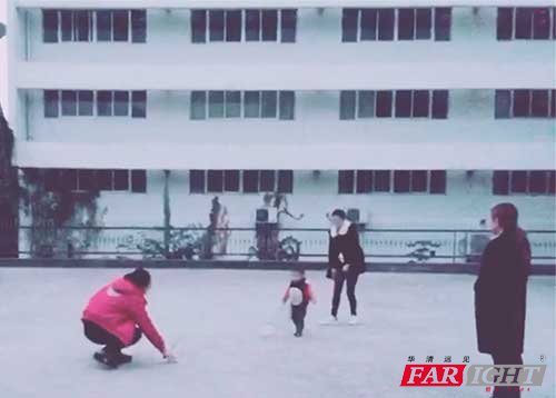 男生的籃球現(xiàn)場自然要配上女生的羽毛球現(xiàn)場,學(xué)生時代的體育課既視感撲面而來。打羽毛球的兩位女老師休息的間隙,就被突然“闖”進(jìn)賽場的小萌娃萌化了。這位未來的羽毛球種子選手躍躍欲試,萬老師也溫柔的將球拍遞給小孩并手把手教學(xué),對面的李老師要好好接招了~