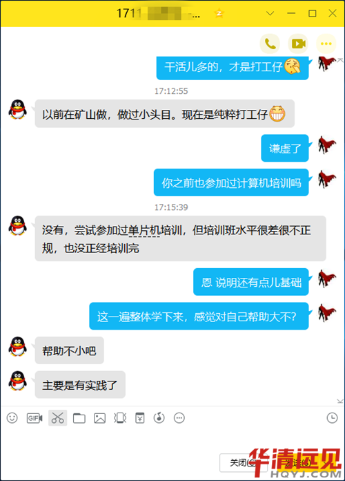 大概兩三年前,本人偶然聽到嵌入式這個概念,于是買了一本《嵌入式系統移植和開發完全手冊》來看,也在網上搜索了一些相關資料,在這過程中了解到華清遠見是做這方面培訓的,并且做得比較好,所以一直有想參加培訓的想法。但由于工作比較忙,所以也僅僅是想想而已。直到去年下半年,本人調換了一個工作,工作比較清閑,而華清創客學院網上培訓也開通了,我參加培訓的想法終于得以實現。