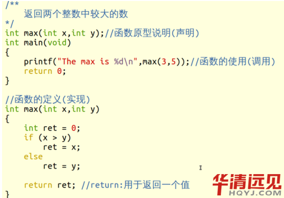 注意:需要將函數(shù)的原型設(shè)計(jì)寫在調(diào)用(使用)之前,為了編譯器對(duì)函數(shù)調(diào)用語句進(jìn)行語法檢查,
