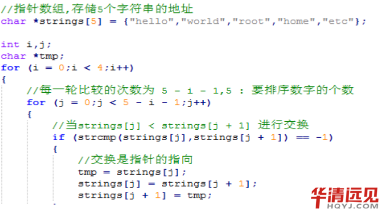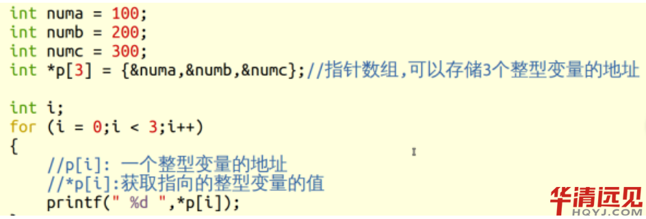 指針數組主要用于存儲地址的集合,每個元素都是存儲的一個地址